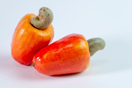 Cashew fruit on white background. (Anacardium occidentale)