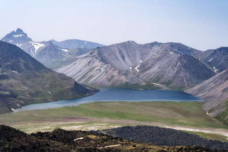 The picturesque lake Ketachan in Kamchatka, Russia. Bystrinsky National Park, near the volcano Ichinskaya Sopka.