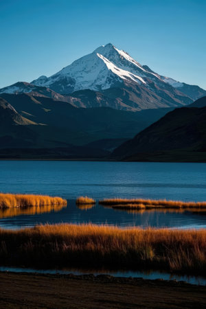 Autumn landscape of mountains and mountain lake in Altai near Mongolia
