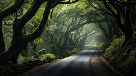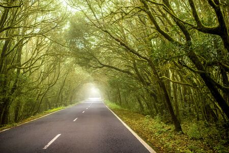 Road in magic misty forest of Anaga Rural Park, Tenerife, Canary Islands, Spain
