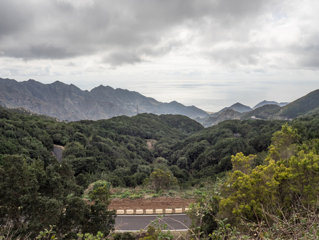 Road TF-12 in Anaga Rural Park - evergreen peaks with ancient forest on Tenerife, Canary Islands, winter travel destination
