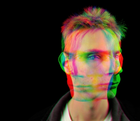 Abstract blurry portrait of a schizophrenic man with mental disorders and bipolar split personality