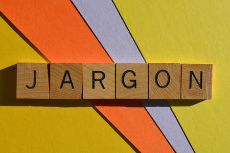 Jargon, word in wooden alphabet letters isolated on colourful background