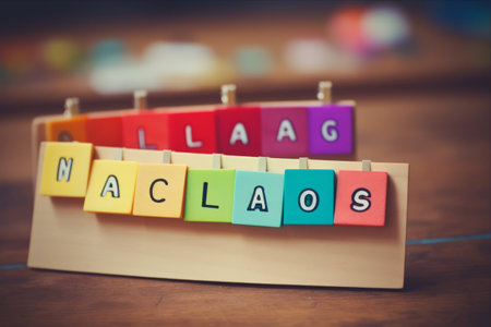Colorful Sticky note on a wooden background with wooden alphabet.