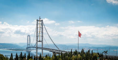 Kocaeli, Turkey - September 03, 2016: Newly constructed Osman Gazi Bridge which is crossing the sea of Marmara from Kocaeli, Turkey.