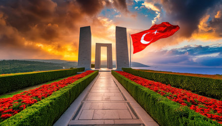 General view of the Martyrs Monument in Çanakkale, Turkey