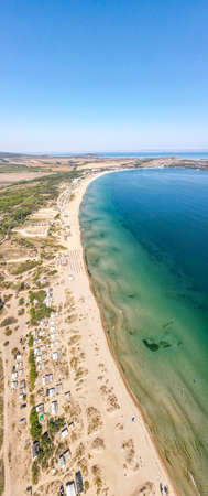 Aerial panorama of Gradina (Garden) Beach near town of Sozopol, Burgas Region, Bulgaria
