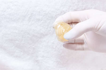 hand using Nitrile glove for male semen or sperm collection, semen donation concept