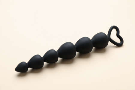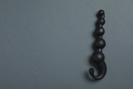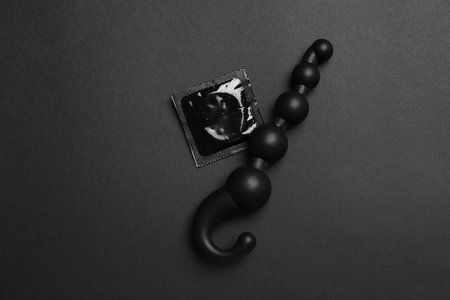 Black anal ball beads on dark background, top view with space for text. sex toy