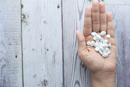 pills and medicines in the hand pharmaceutical medicine pharmacy