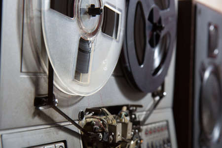 close-up, background, retro coils with magnetic film, for listening to music