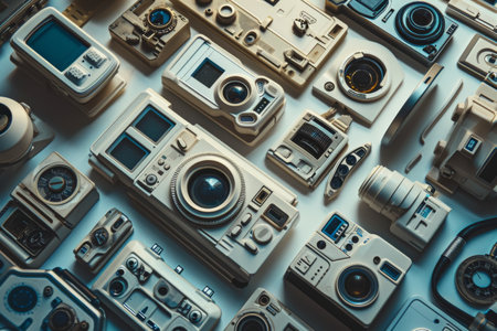 Various electronic gadgets, including laptops, cameras, and speakers, are neatly arranged on a neutral background, showcasing a blend of technology and design.