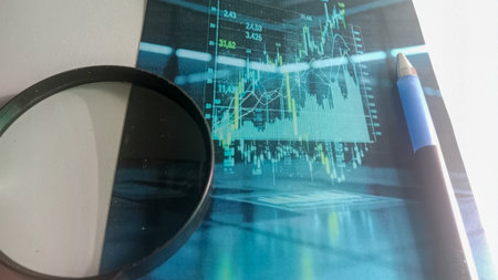 examining stock market trends with a magnifying glass, analyzing financial data for investment opportunities and strategic decision making now today