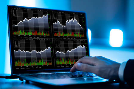 Financial Trade Manager Analyze Stock Market Indicators With Laptop For Investment Strategy The best financial data and charts