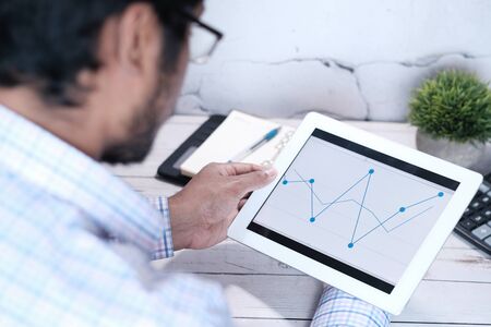 business growth. Businessman using tablet analyzing sales data and economic growth graph chart. digital business touch screen. Business global internet application technology and digital marketing