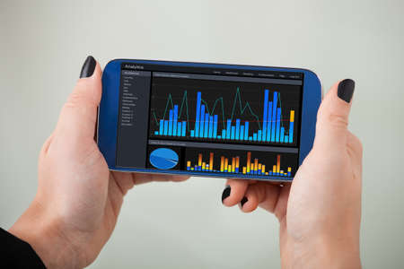 Businessperson With Mobile Phone Showing Graph On Screen