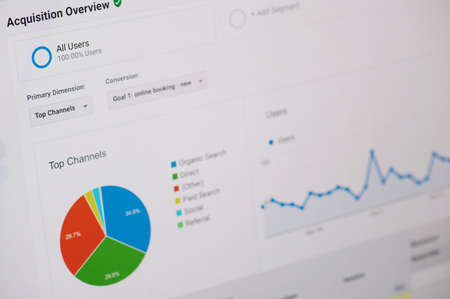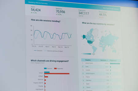New york, USA - October 23, 2020: Managing acquisition ads overview screen display close up view