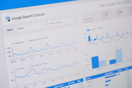 New york, USA - October 23, 2020: Managing google search console screen display close up view