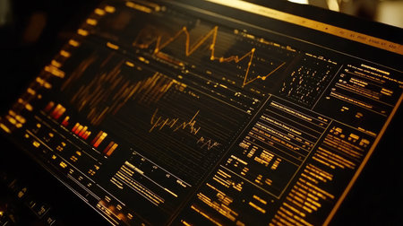 Close-up of a sophisticated data visualization dashboard featuring various graphs and analytics for monitoring performance and trends in real-time.