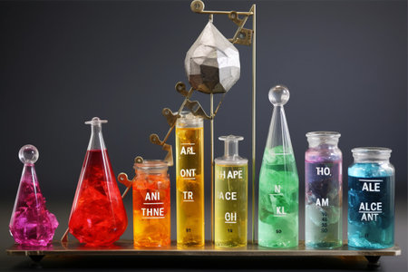Colorful beakers chemicals set. science education. Generate AI