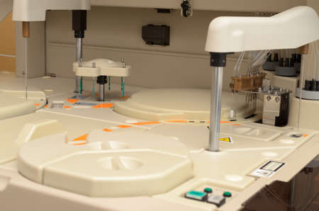 Modern medical apparatus, automatic biochemical analysis. Indoors.