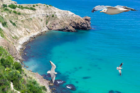 Fiolent cape, sea near Sevastopol. Sunny view of the Black Sea