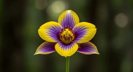 Beautiful purple and yellow flower on a dark background. Close-up.