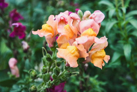 Snapdragon Antirrhinum majus flowers in the garden closeup