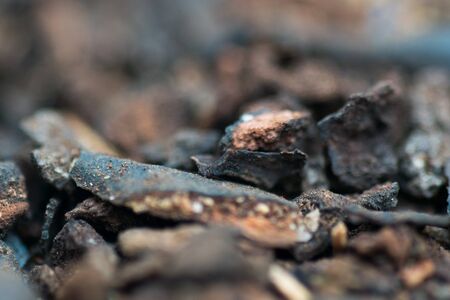 Stones of petrified trees on white background. Ancient old petrified wood, excavation, minerals. Copy, empty space for text.