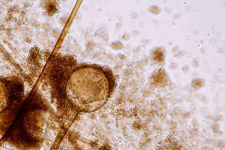 Characteristics of Lichen, hyphae and Symbiotic algae under the microscope for education.
