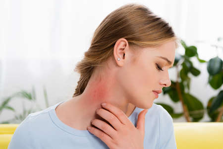 Allergic rash on the skin. Woman with dermatology problem on back skin