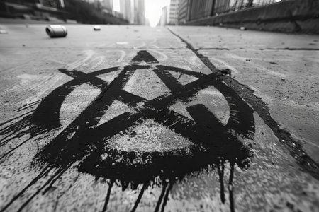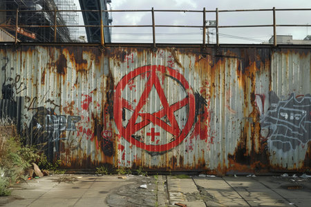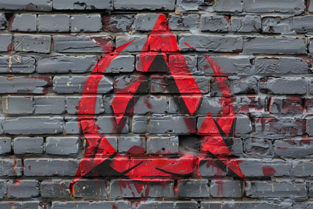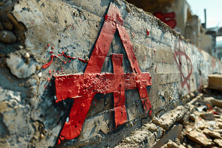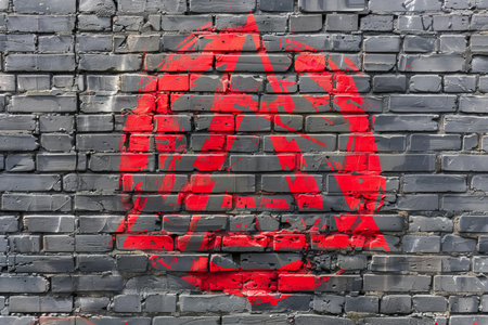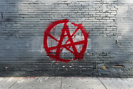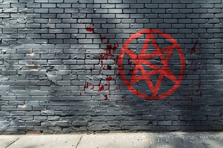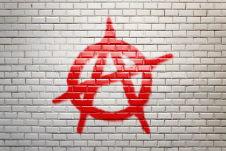 Concrete block wall with anarchy in red sprayed on it in red, illustration