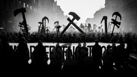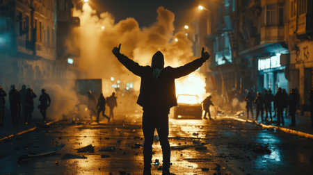 Urban turmoil, street riots civil unrest and societal tensions, chaos and intensity of public protest and demonstration in the heart of the city
