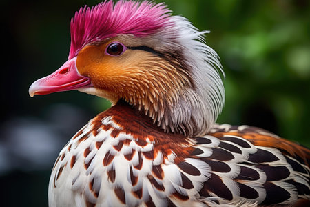 Beautiful closeup view of peaceful resting mommy duck (Mallard) with reflection in pond water in Herbert Park, Dublin, Ireland. Soft and selective focus. Vibrant bright colors