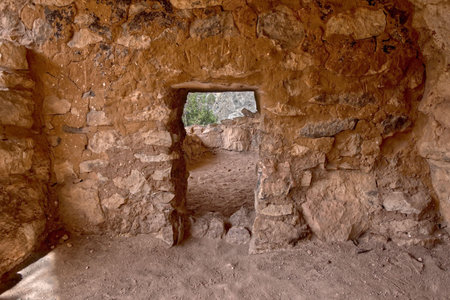 Ancient Doorway inside the Sinagua Indian ruins in Walnut Canyon National Monument Arizona. The ruins are managed by the National Park Service. No property release is needed.