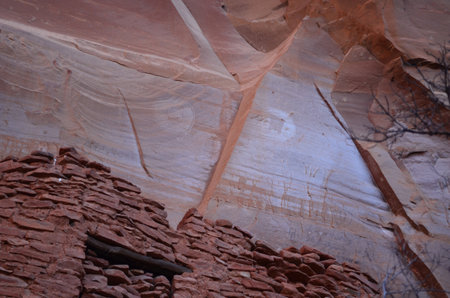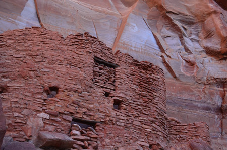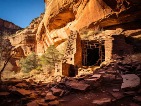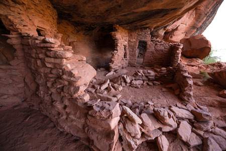 Historic ancient crumbling red rock cliff dwelling ruins in the Southwest.