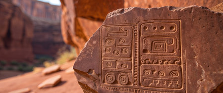 close-up of ancient petroglyphs on red canyon wall, created with generative ai