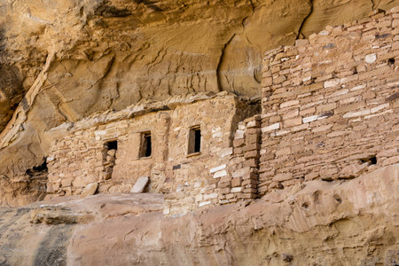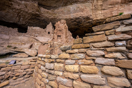 A close up view of the construction of Spruce Tree House dwellings in Mesa Verde Nation Park, Colorado, USA