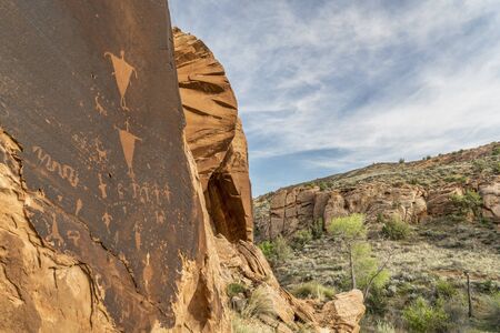 petroglyph sandstone panel in the canyon of Mill Creek near Moab, Utah