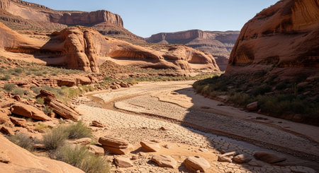 AI Generated. Red rocks in the desert surrounded by bright