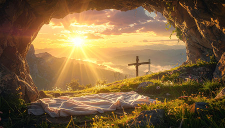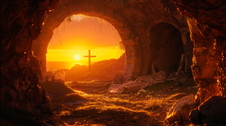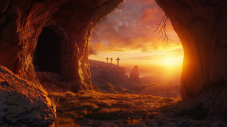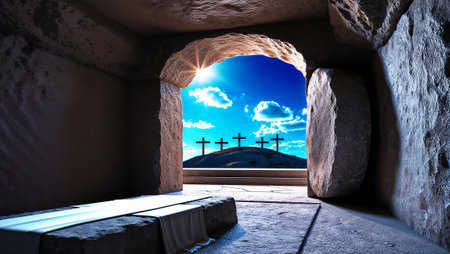 Resurrection Morning: The Empty Tomb of Christ at Sunrise, Symbolizing Easter's Promise