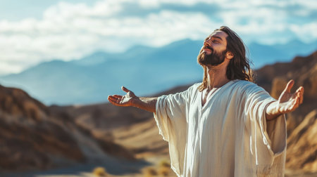 Jesus christ in the desert a profound expression of faith and spirituality with outstretched arms