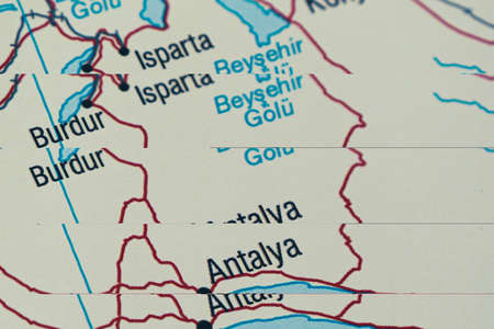 Close-up of the map of Antalya, Turkey.