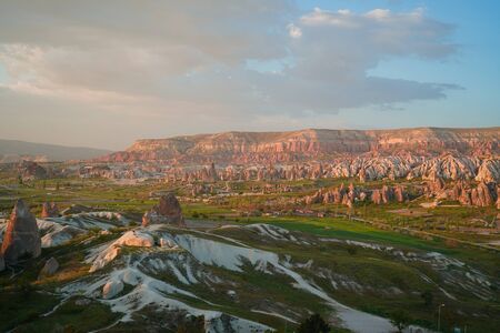 Beautiful landscape of Cappadocia plateau in a morning sunrise, Central Anatolia in Turkey, Asia
