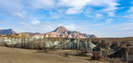 Beautiful view of the hills of Cappadocia. One of the sights of Turkey. Tourism, travel, beautiful landscapes, nature.