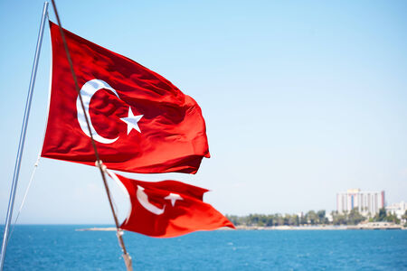 Turkey flag against the background of the Mediterranean Sea