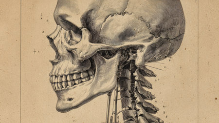 Close up of human skeleton. AI Gen.