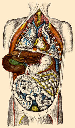 The viscera of the human body. Illustration of the 19th century. Germany. Color image.