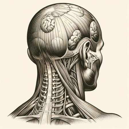 muscle anatomy - lateral view of the head and spinal column.