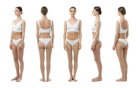 Woman's anatomy, front, back, and side views, modern illustration, front, back, and side views